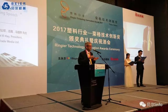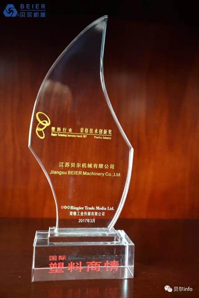 江蘇貝爾機(jī)械6000KG/H PET清洗回收生產(chǎn)線榮獲 2017榮格技術(shù)創(chuàng)新獎。榮格工業(yè)傳媒總裁馬國熙先生致辭時提到的:"今年所有的獲獎產(chǎn)品都是實(shí)至名歸,有些技術(shù)成功填補(bǔ)了國內(nèi)市場的空白;有些技術(shù)極大優(yōu)化了傳統(tǒng)加工工藝技術(shù),從而表現(xiàn)得更加節(jié)能和高效;還有些技術(shù)在高性能和環(huán)保方面有杰出表現(xiàn)……所有的獲獎產(chǎn)品都是優(yōu)中選優(yōu),而且今年的報名產(chǎn)品尤為注重在具體應(yīng)用領(lǐng)域的創(chuàng)新"。