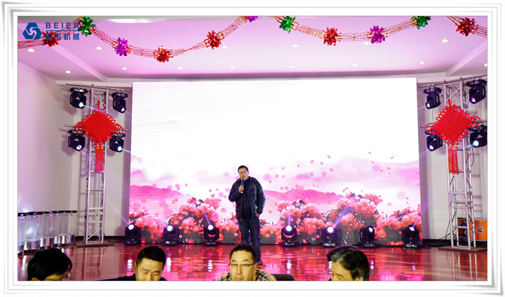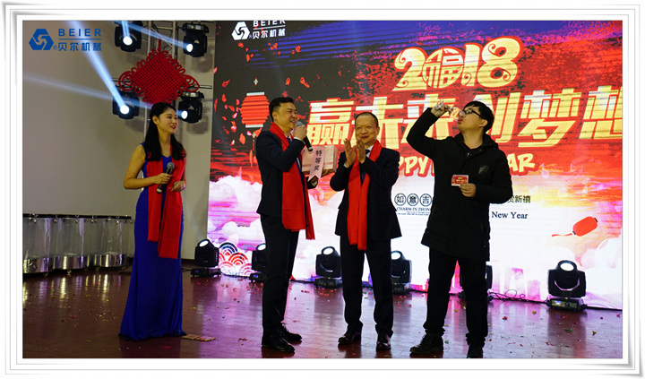 在表演開始前,董事長何德方致以新春致辭,他慷慨激昂地回顧了公司2017年取得的輝煌戰(zhàn)績一一感謝公司全體員工、各部門的辛勤付出,并展望2018年發(fā)展規(guī)劃,公司將繼續(xù)開拓創(chuàng)新,整合資源,所有貝爾人要攜起手來,為實現(xiàn)公司更高的目標而奮斗!得到了全體員工的熱烈掌聲!在喜慶的祝酒音樂伴奏下,何董事長舉杯向所有同事和來賓祝酒,新春晚宴在一片熱鬧喜悅的氣氛中正式開始。員工代表清洗組:楊愛萍進行了發(fā)言,她作為參與者,見證了貝爾機械二十年來的蓬勃發(fā)展,反映了貝爾自下而上的實干精神已經(jīng)成為貝爾的企業(yè)文化。