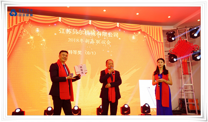 在這個辭舊迎新的時刻,江蘇貝爾機械集團2018年新春晚會于201823日晚在公司禮堂隆重舉行。江蘇貝爾機械及星貝爾全體員工以及特邀嘉賓三百余人參加了本次盛會。晚會上,由各部門員工精心準備的節(jié)目精彩紛呈,公司高管與員工親切互動、激動人心的抽獎活動,讓歌聲、掌聲、歡呼聲一直在會場上蕩漾。整場晚會高潮迭起,呈現(xiàn)出貝爾大家庭的歡樂和諧。