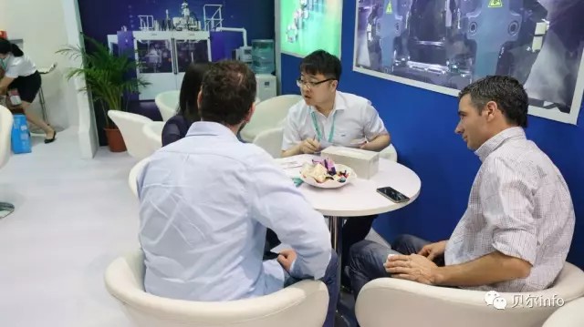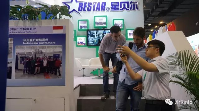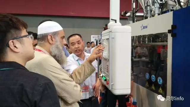 原來是展會上的展機正在試機,公司為了更好的讓客戶了解我們的產(chǎn)品,特地安排了展機的試機。此次演示的高速吹瓶機B20D-750, 2+2 雙工位,得到了客戶的高度關(guān)注,來自世界各國的客戶對星貝爾的技術(shù)實力給予了高度評價。